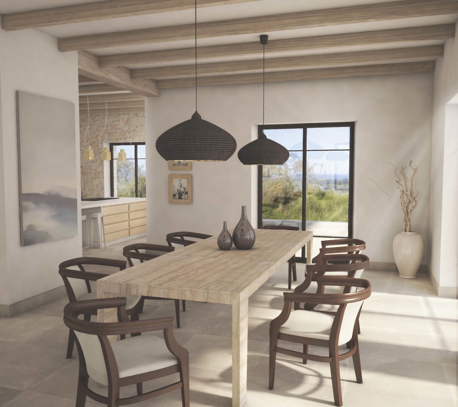 The project plans the construction of a Finca with a net living area of 300 m2 plus terraces that will be distributed over two floors.