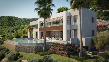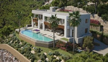 Modern newly built villa at the highest point of Monport with southern panoramic views of the sea and Port Andratx with 7 bedrooms, lift and separate guest house