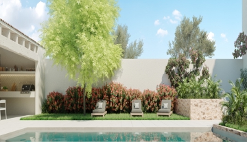 Semi-detached family villa with pool under construction in the center of Santanyi